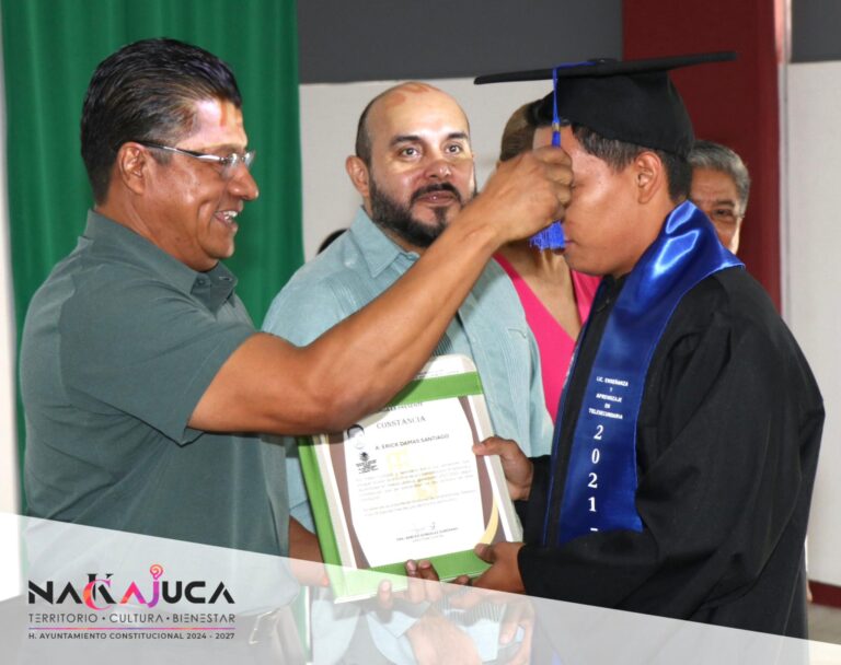 Como invitado especial, el presidente municipal de Nacajuca, Roberto Ocaña Leyva, acompañó a la comunidad educativa en la emotiva ceremonia de graduación de las Licenciaturas en Educación Primaria Indígena con Enfoque Intercultural Bilingüe y en Enseñanza y Aprendizaje en Telesecundaria.