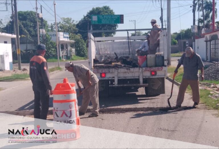 Se llevaron a cabo trabajos de rehabilitación con mezcla asfáltica para atender los baches que afectaban la circulación en la calle Ignacio Ramírez y en la carretera Nacajuca–Tucta.