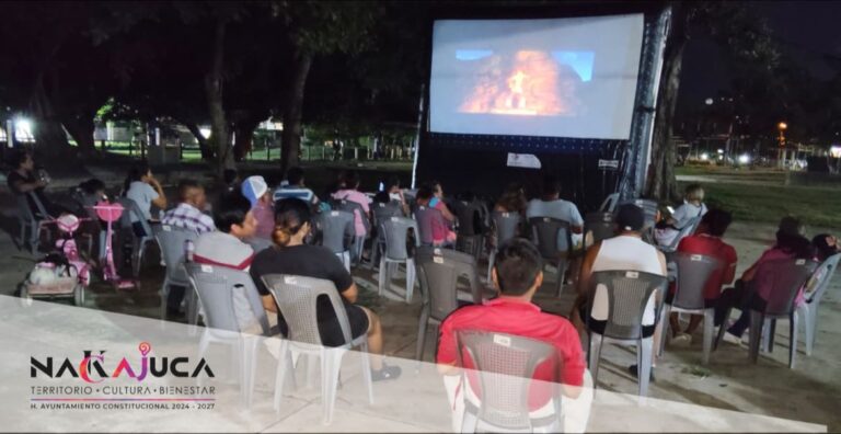 La Unidad de Prevención Social de la Violencia y Participación Ciudadana informó que este día se llevó a cabo conforme a lo programado la actividad del Cine Móvil en el fraccionamiento Bosques de Saloya.