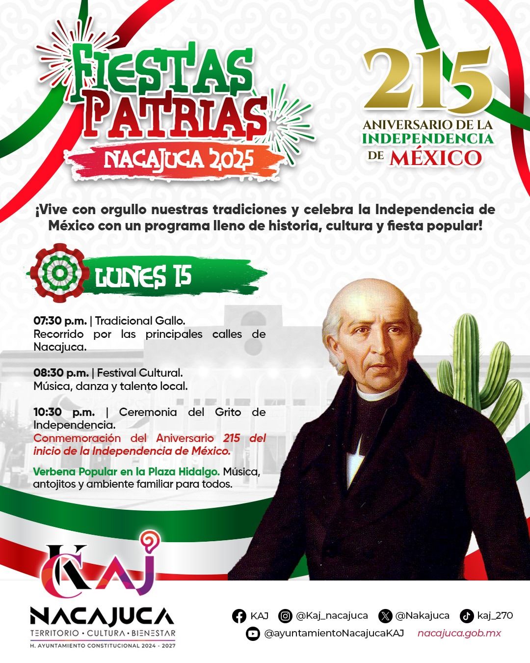 Lunes 15 de septiembre, ¡Vive con orgullo nuestras tradiciones y celebra la independencia de México con un programa lleno de historia, cultura y fiesta popular.