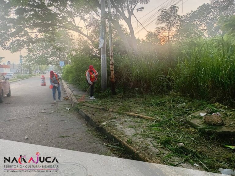 - Se realizaron trabajos de limpieza en la Av. Domingo Ordoñez, donde la banqueta estaba invadida por maleza.