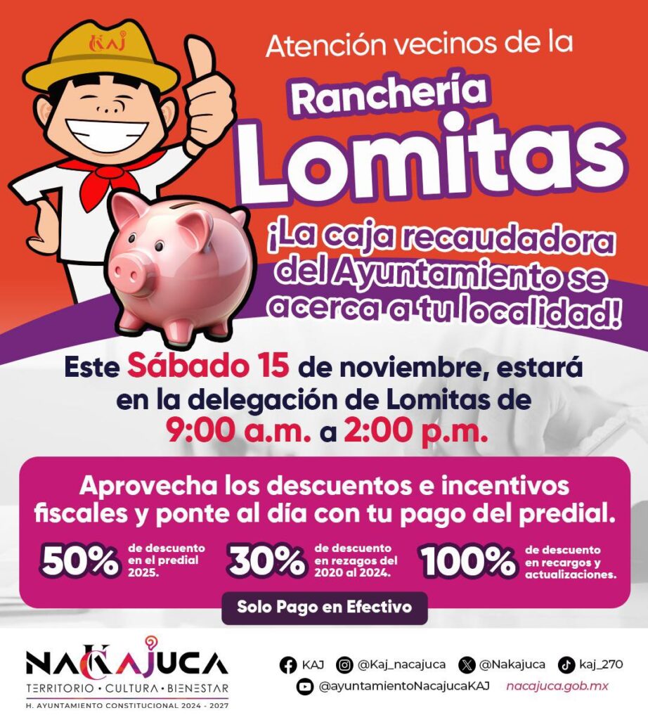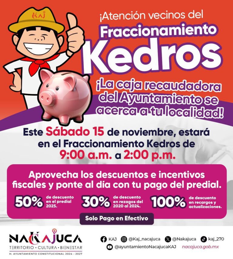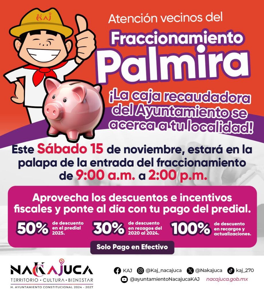 Aprovecha los descuentos en tu pago del predial. Este sábado 15 de noviembre, aprovecha los descuentos en tu pago del predial