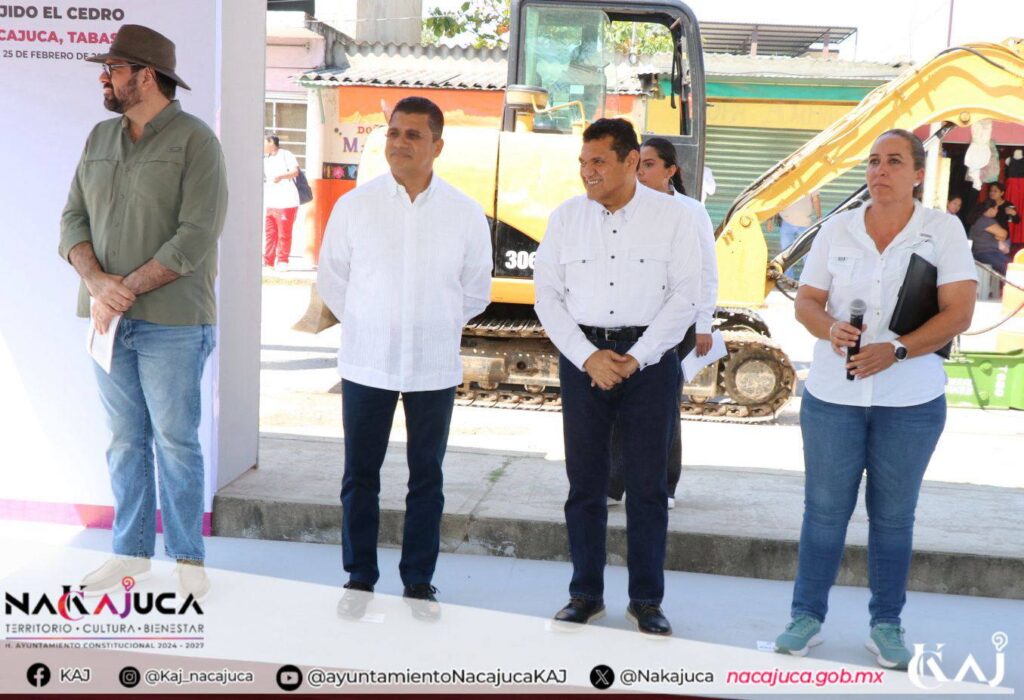 El gobernador del estado, Javier May Rodríguez , y el presidente municipal, Arq. Roberto Ocaña, estuvieron en el Ejido El Cedro Nacajuca, donde dieron el banderazo de inicio a la construcción de la línea de conducción y distribución del circuito cisterna Pomoca–fraccionamiento Bosques de Saloya.