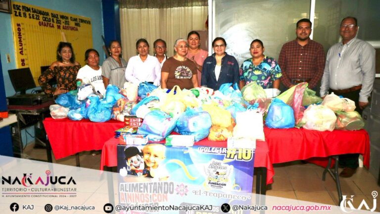 La comunidad escolar de la Escuela Primaria “Salvador Díaz Mirón”, del poblado Guatacalca, se sumó a la décima colecta de despensas que impulsa el Mago Chon-Tall, realizando la entrega de apoyos al DIF Municipal de Nacajuca.
