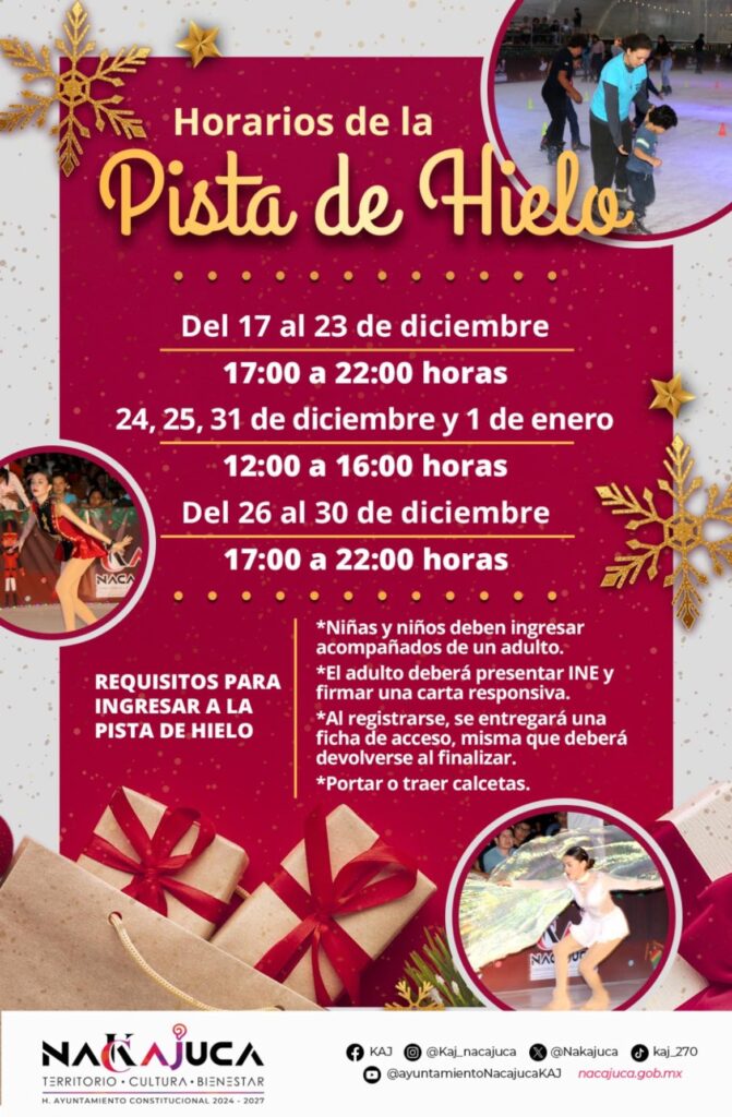 Disfruta en familia la Pista de Hielo de Nacajuca. Del 17 al 23 y del 26 al 30 de diciembre: